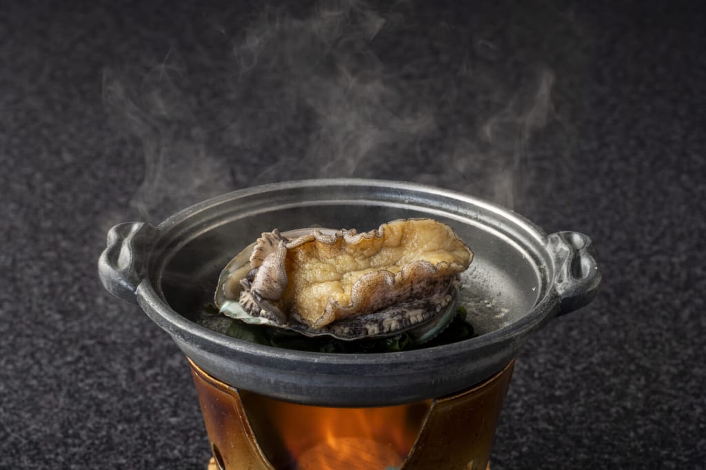 あわびの踊り蒸しは、焼きとは違い蒸すことに